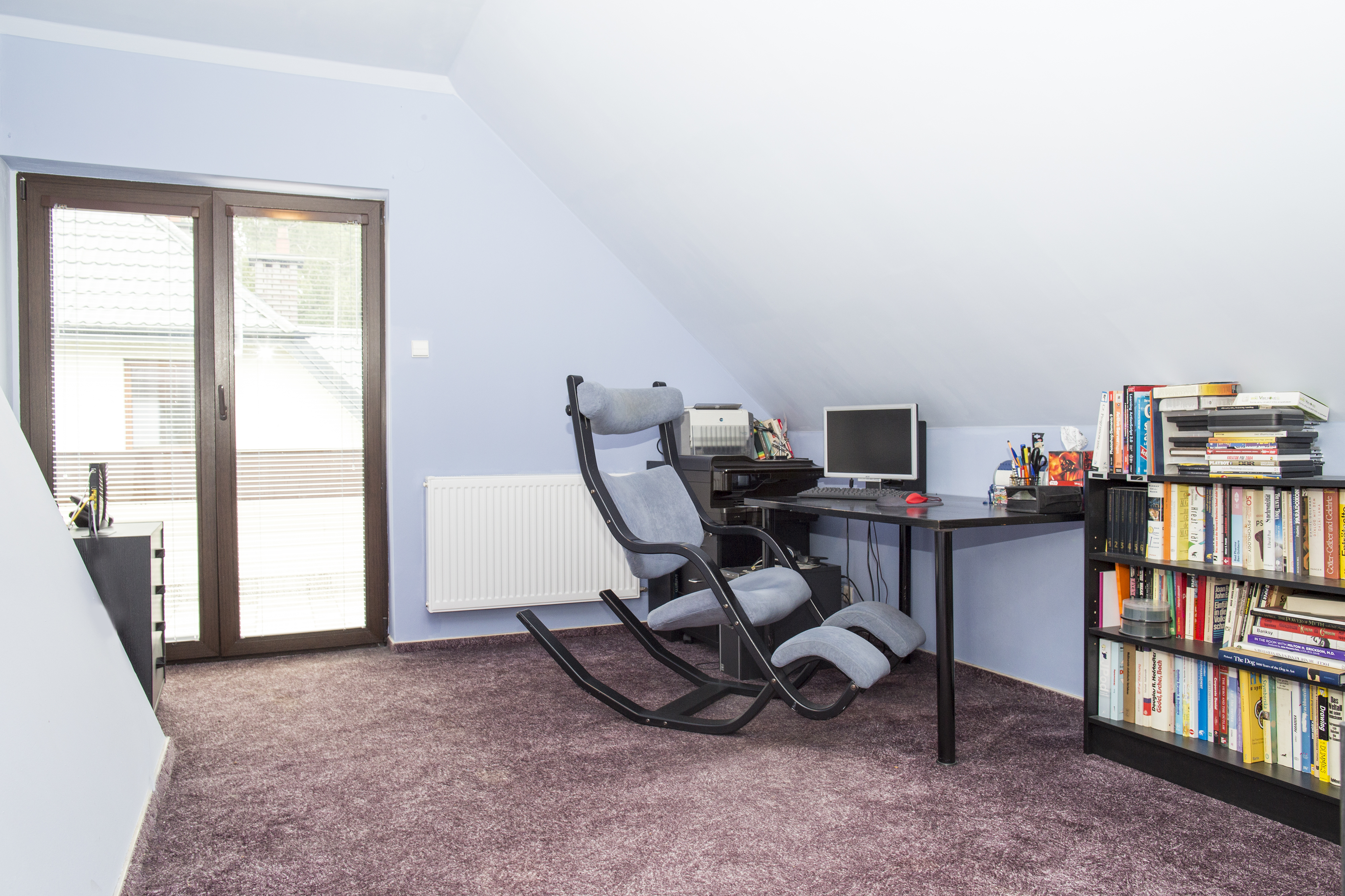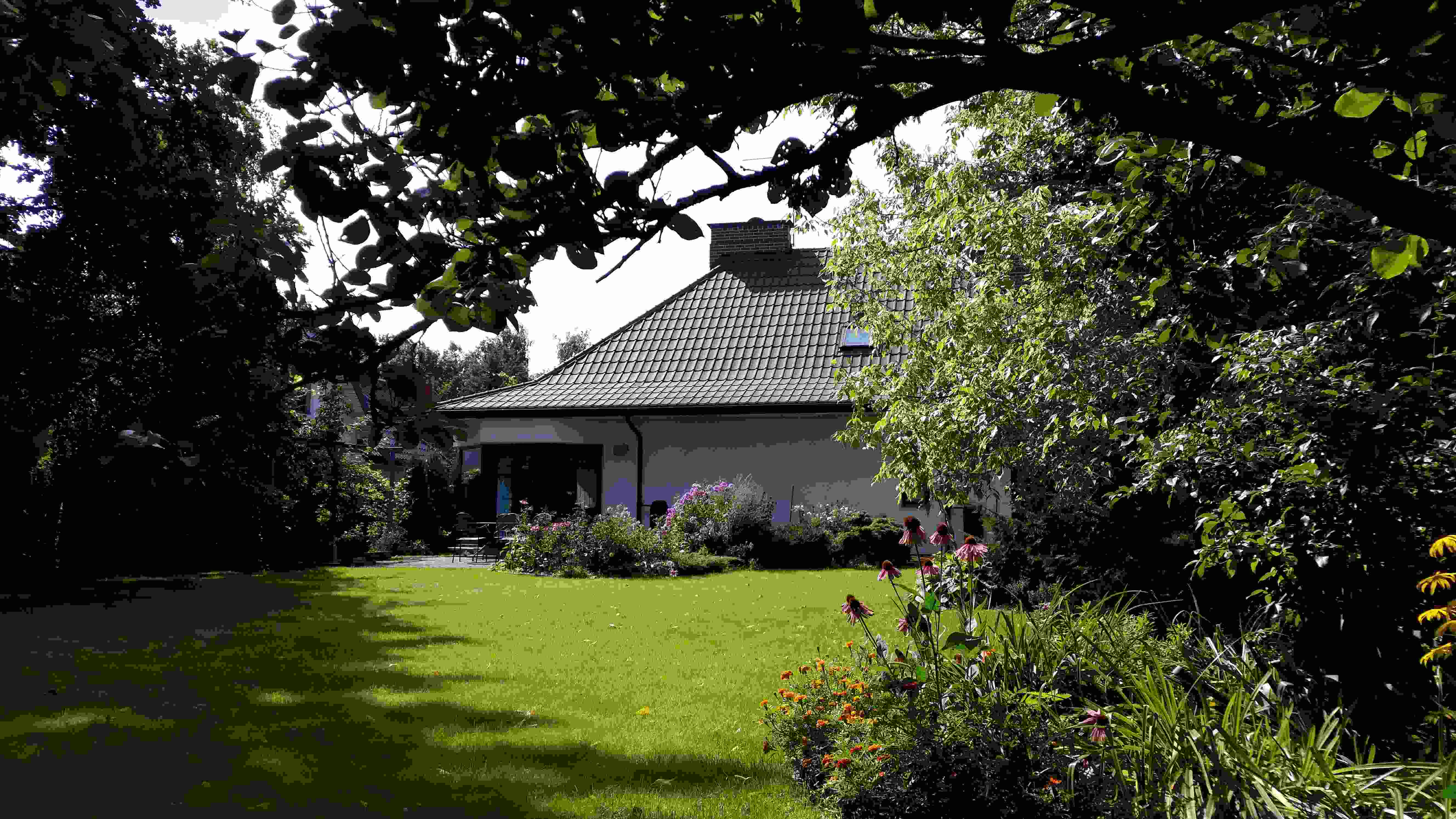 This photo session of the house for sale in Warsaw Białołęka was made before the renovation. The interiors are colorful. As you can see, we like strong accents.