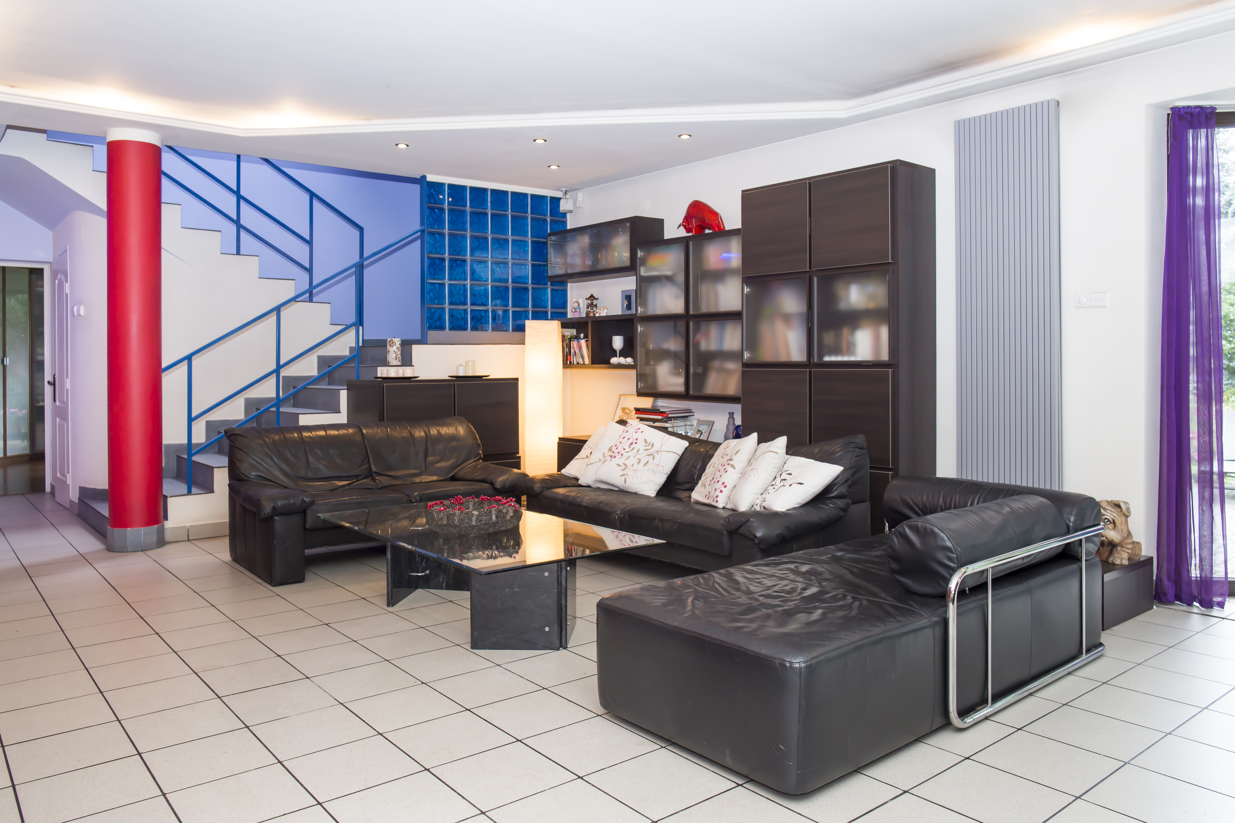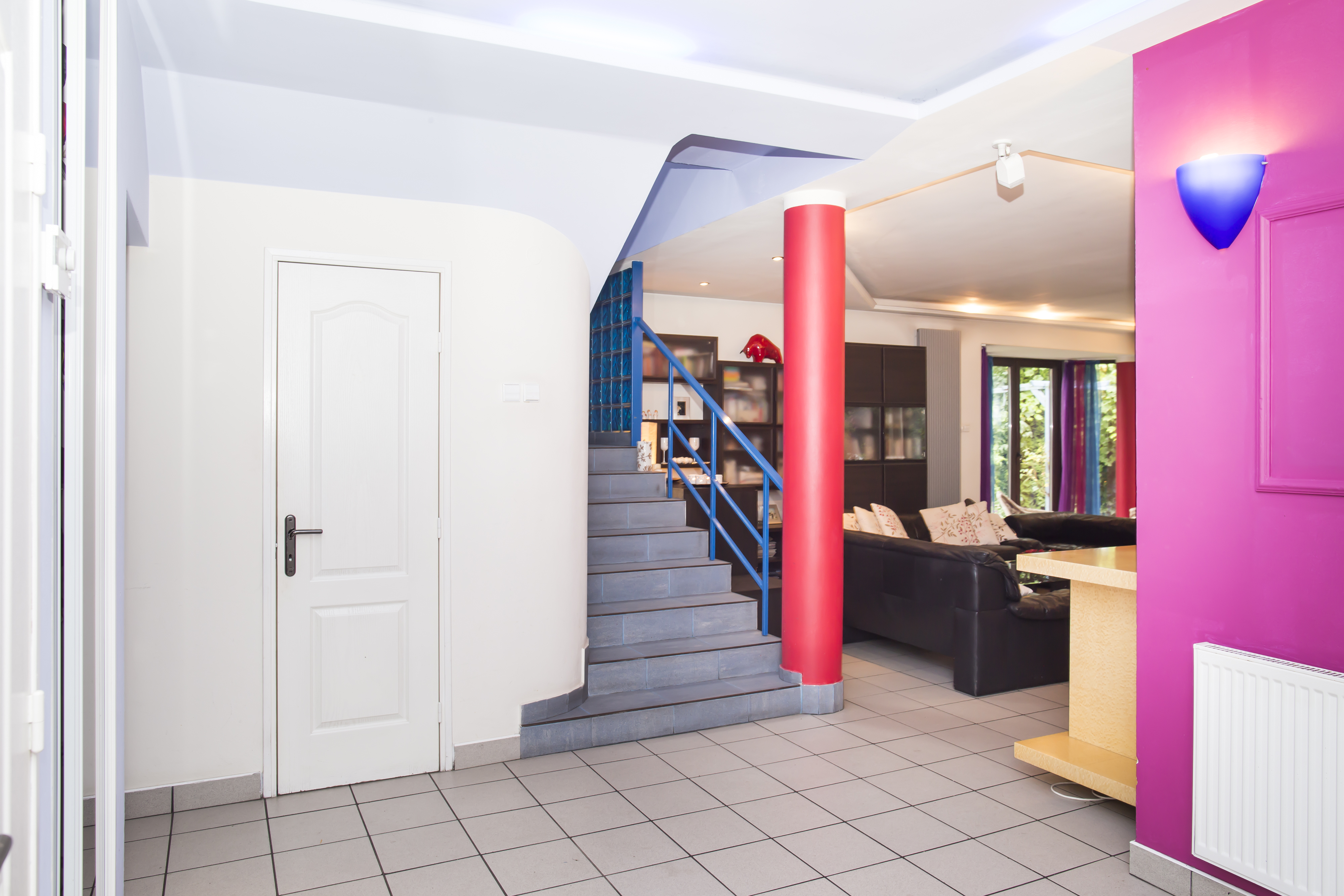 Photos of the house for sale in Warsaw, Poland – when we used to live there, before renovation. Coloured walls, full of furniture.